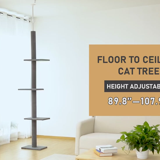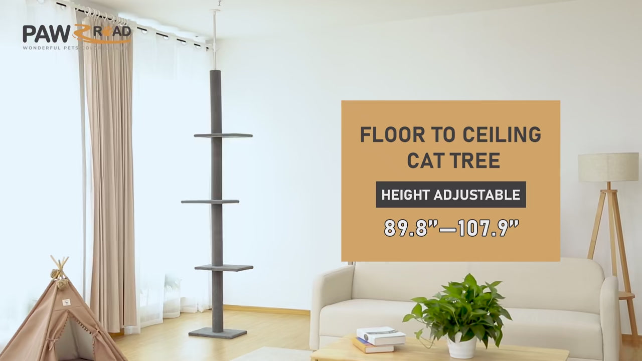 5. L'arbre à chat est doté d'une base solide en bas et d'une barre de liaison en haut qui se connecte au plafond, ce qui contribue à augmenter la stabilité de cet arbre à chat. Il est plus stable et plus sûr lorsque votre chat rampe, saute et gratte.