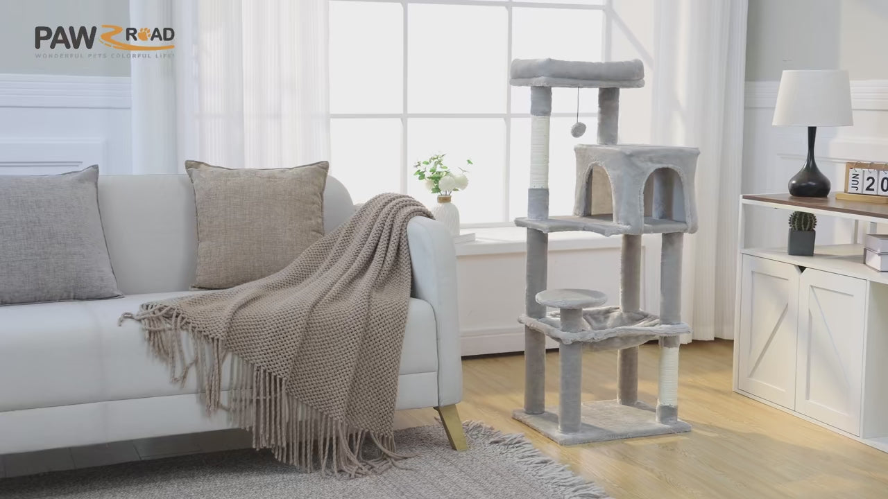 1. Arbre à chat multifonctionnel de luxe, peut accueillir 2 à 3 chatons pour jouer ensemble en même temps. Offre suffisamment d'espace pour qu'ils puissent jouer, se détendre et explorer.