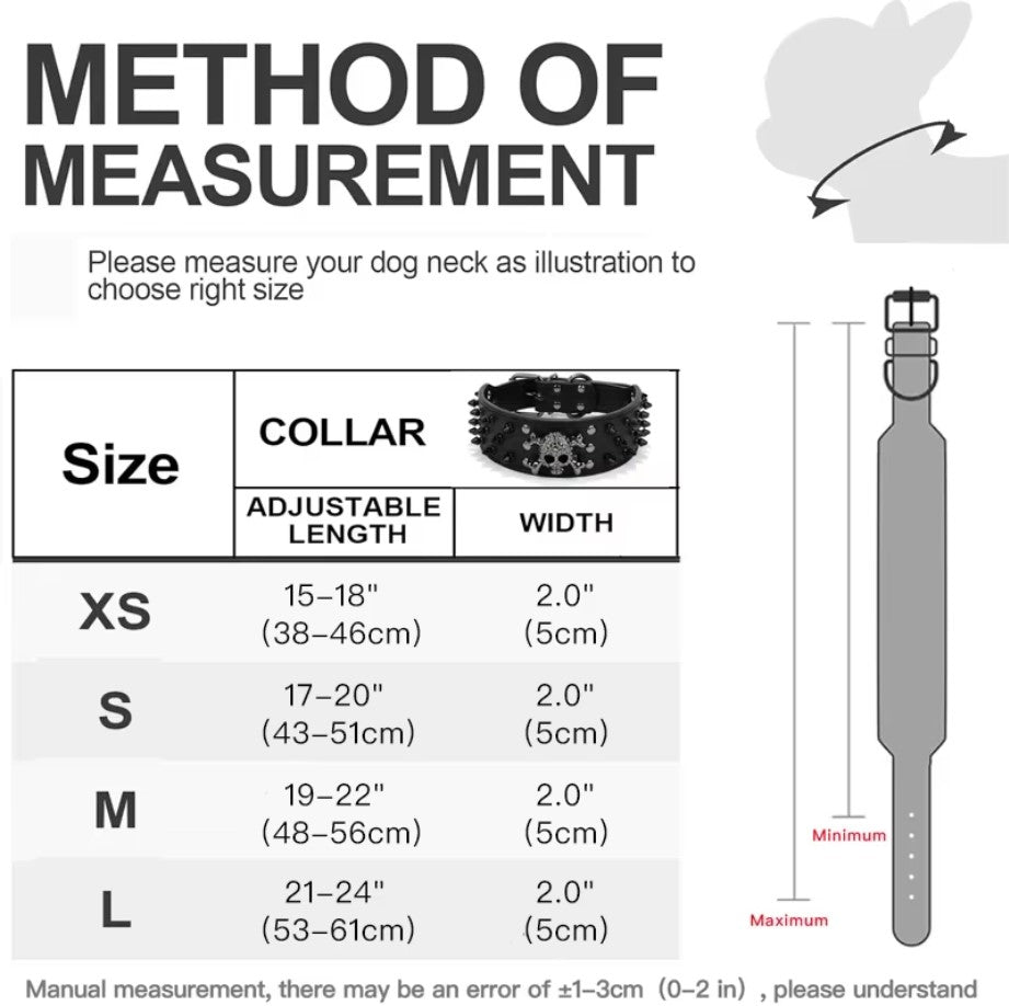 Affirmez le style rebelle de votre chien avec notre collection de colliers cloutés en cuir style Skull avec motif. Ces colliers audacieux, ornés de clous et de motifs uniques, apportent une touche de caractère et d'attitude à chaque promenade. Conçus pour allier durabilité et confort, ils sont parfaits pour les chiens qui aiment se démarquer. Faites ressortir l'esprit rock'n'roll de votre compagnon avec nos colliers punk stylés et robustes !