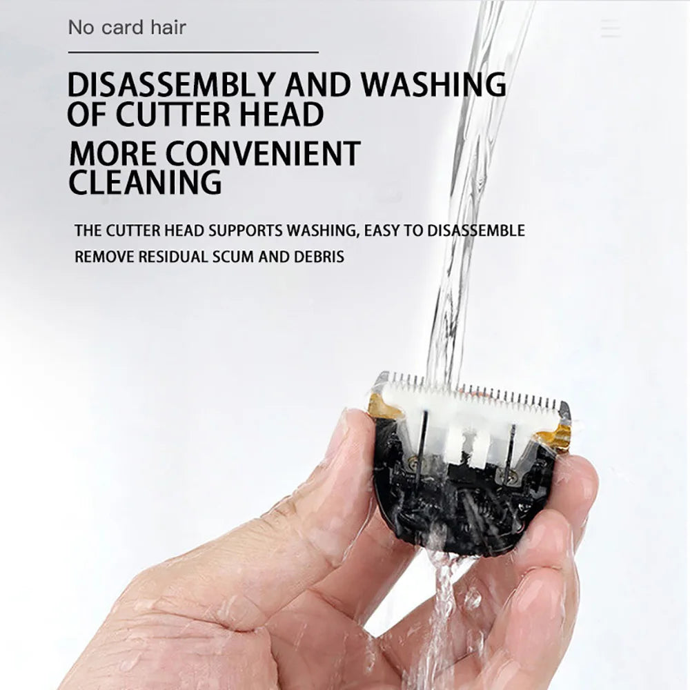 Détachez la partie supérieure de la tondeuse et passez-la sous l'eau pour éliminer rapidement les poils et éviter l'accumulation d